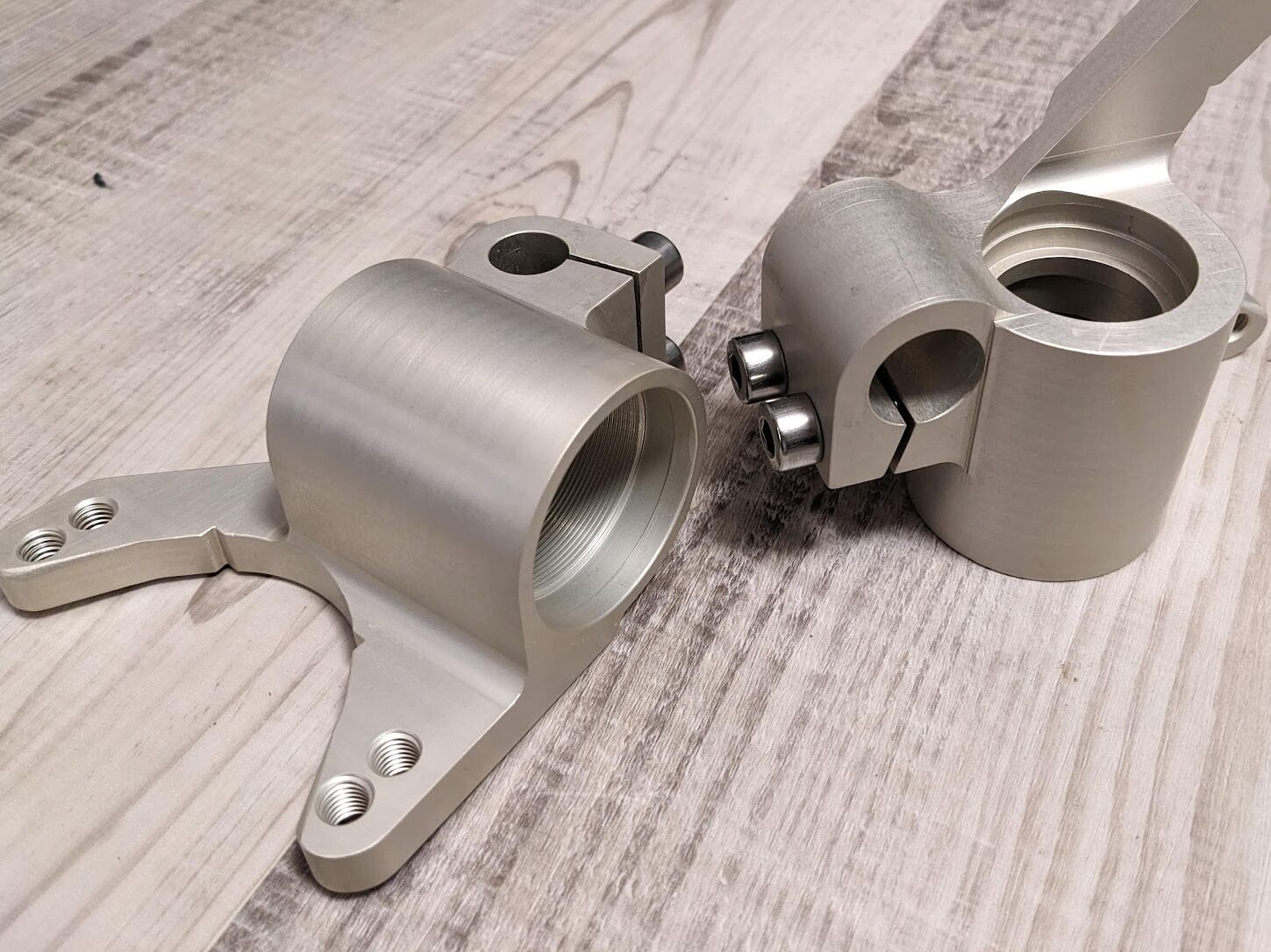 Für eine Husqvarna TC85, technisch weitgehend baugleich mit der KTM 85 SX und der GasGas MC85, wurden neue Gabelfüße entwickelt und gefertigt. Ausgangsbasis ist ein Motocross-Motorrad für Jugendliche mit Einzelscheibenbremse. Um den erhöhten Anforderungen an das Bremsverhalten auf Kartbahnen gerecht zu werden, wurde die Gabel auf eine Doppelscheibenbremse umkonstruiert. Als Bremssättel kommen die weit verbreiteten und kostengünstigen Brembo P32F zum Einsatz. Das Bremsverhalten auf Kartbahnen konnte dadurch insbesondere im Grenzbereich deutlich verbessert werden.